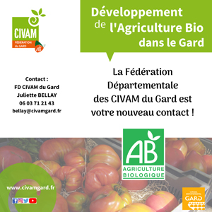 L’agriculture biologique (AB) fait partie depuis plus de 40 ans de l’ADN du réseau CIVAM Gard, la Fédération Départementale des CIVAM du Gard a donc décidé de construire un pôle d’accompagnement de l’Agriculture Bio Gardoise*.