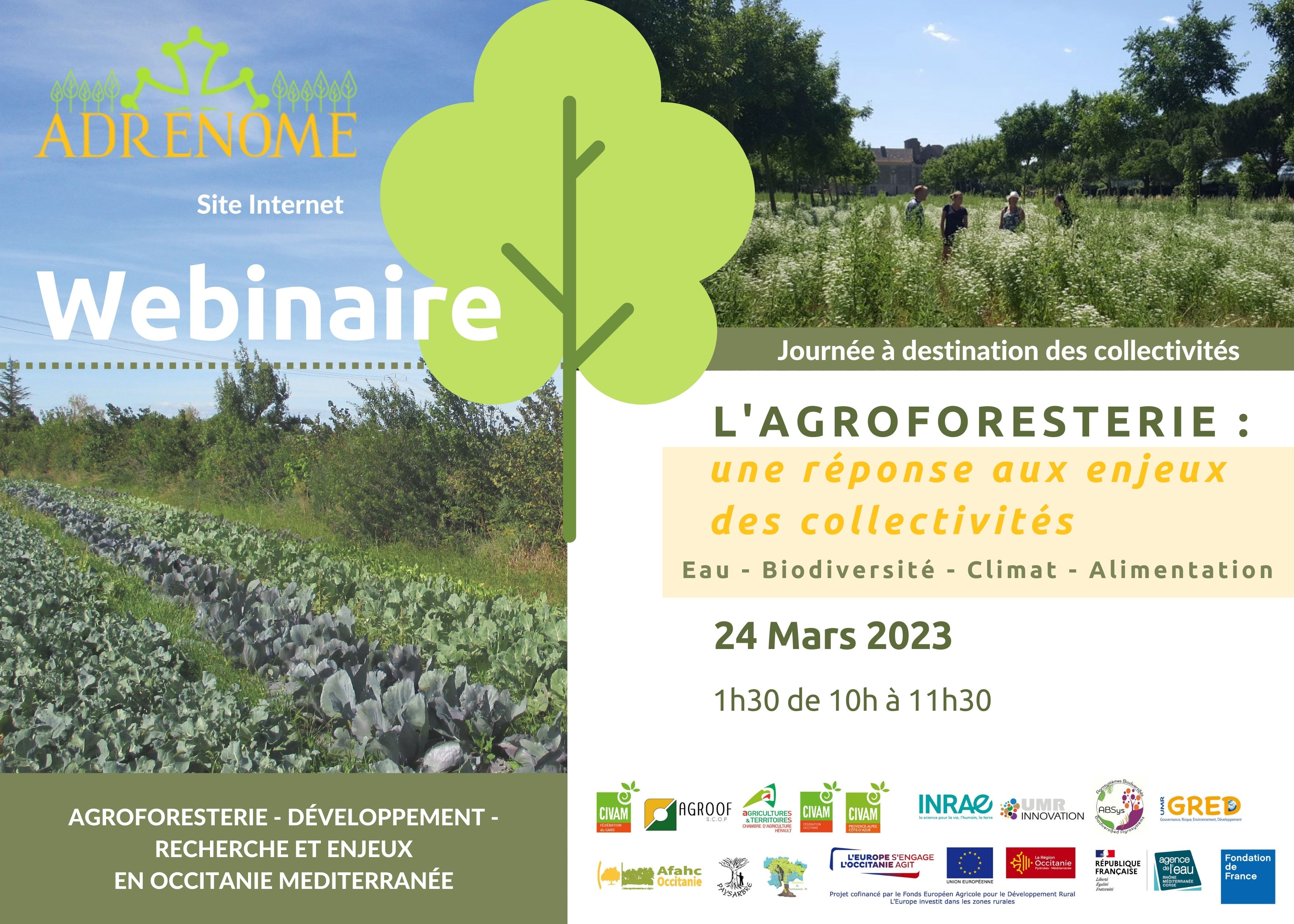Ce webinaire était organisé dans le cadre du projet ADRENOME : développement de l’agroforesterie en Occitanie méditerranéenne (2019-2023) piloté par la FD CIVAM 30 en partenariat avec ses principaux partenaires : SCOP AGROOF, l’lNRAE de Montpellier, Chambre d’Agriculture 34, AFAHC Occitanie, FR CIVAM Occitanie et leurs adhérents)
